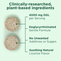 A chewable plant-based licorice root extract with glycyrrhizin removed, formulated to support stomach comfort and everyday digestive ease.